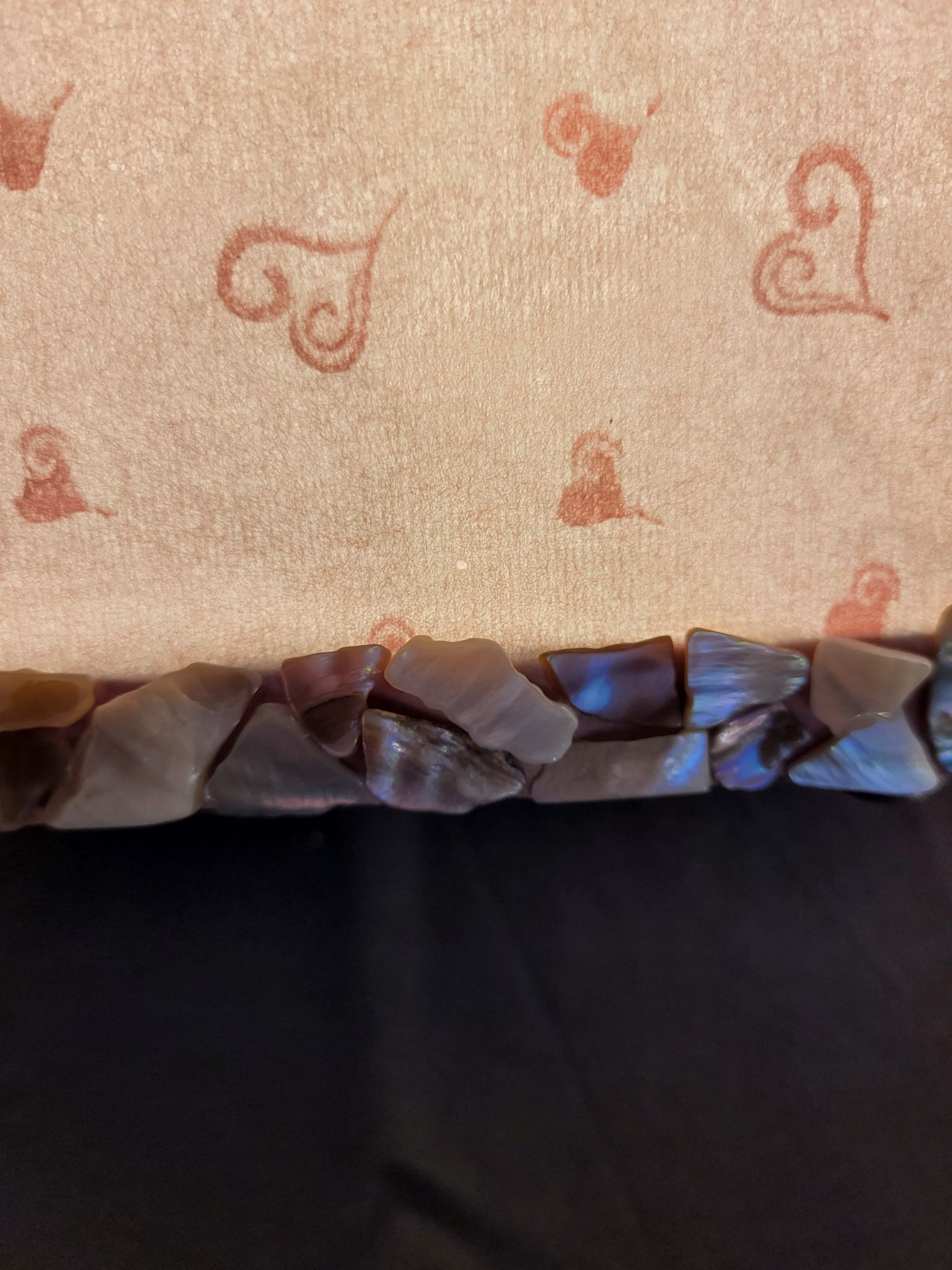 This piece was created with 2 layers of washi paper, 1 layer of Ino Hearts, and bits of shell